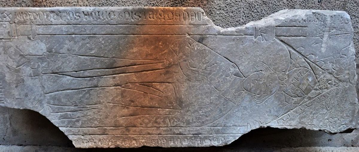 Datada entre 1439 y 1448, la losa salió seguramente del cincel de un artista de segundo nivel, según la investigadora, lo que justifica “la desatención del labrado y el desinterés a la hora de reproducir detalles epigráfico-iconográficos y elementos de vanguardia artística, como el encuadre arquitectónico”.