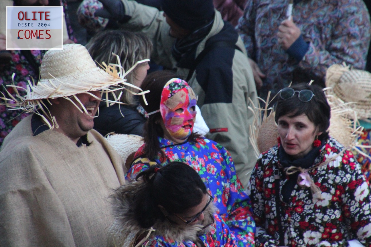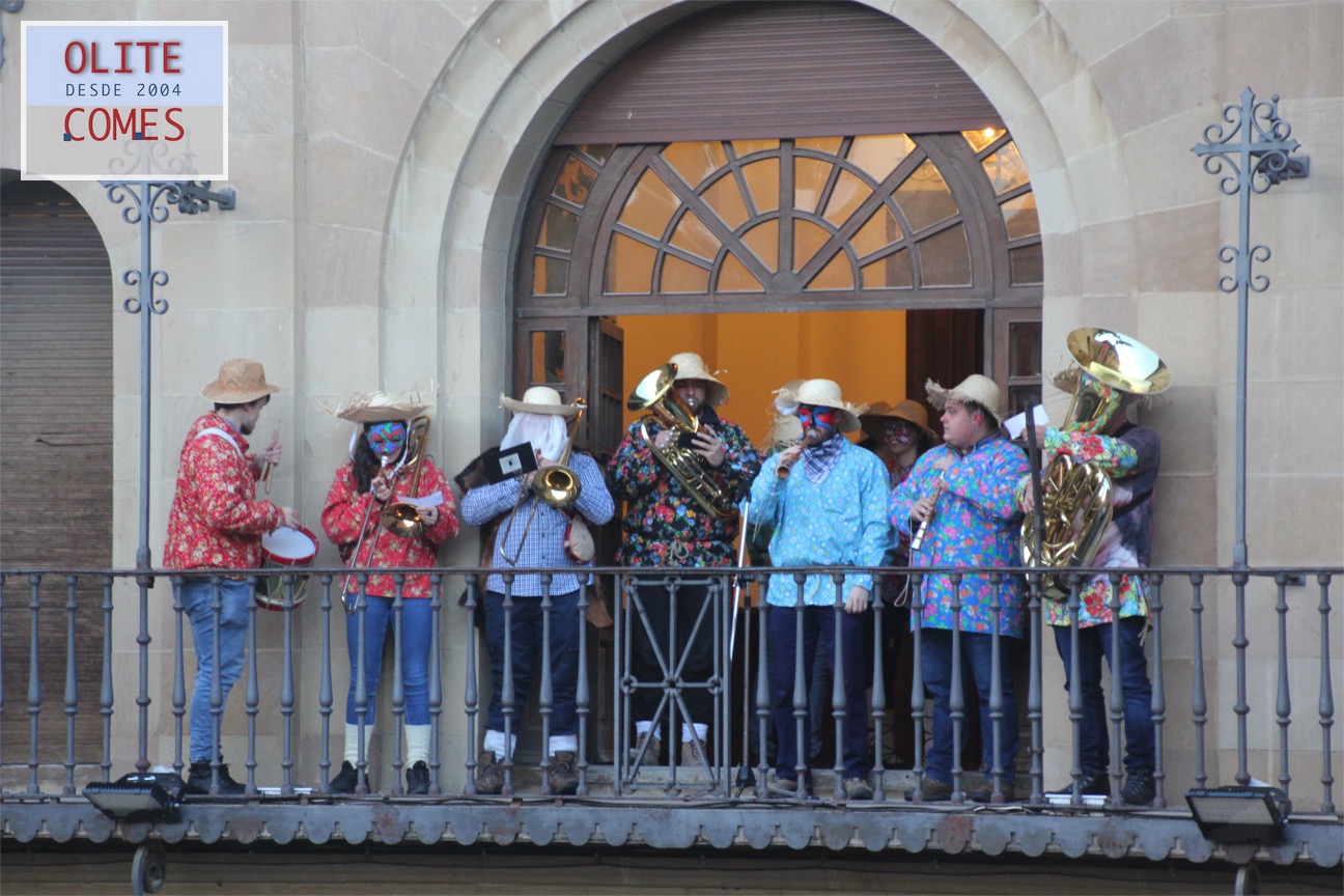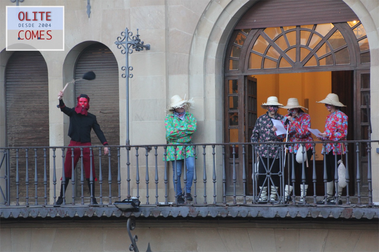 El pregón que dio inicio a los festejo en la plaza de Carlos III el Noble. Las tres vecinas de Olite salieron al balcón en representación del grupo de dantzas Txibiri, organizador del evento y responsable de recuperar la tradición en la localidad, pues fueron ellos quienes en 1992 decidieron volver a festejar los actos del Carnaval Rural. La fiesta está datada en 1600 y se retomó gracias a la tesis de la olitense Cristina Bayona sobre el carnaval.