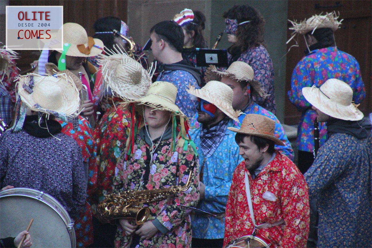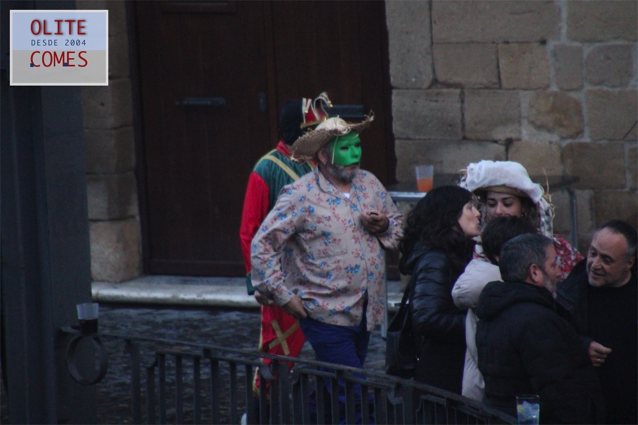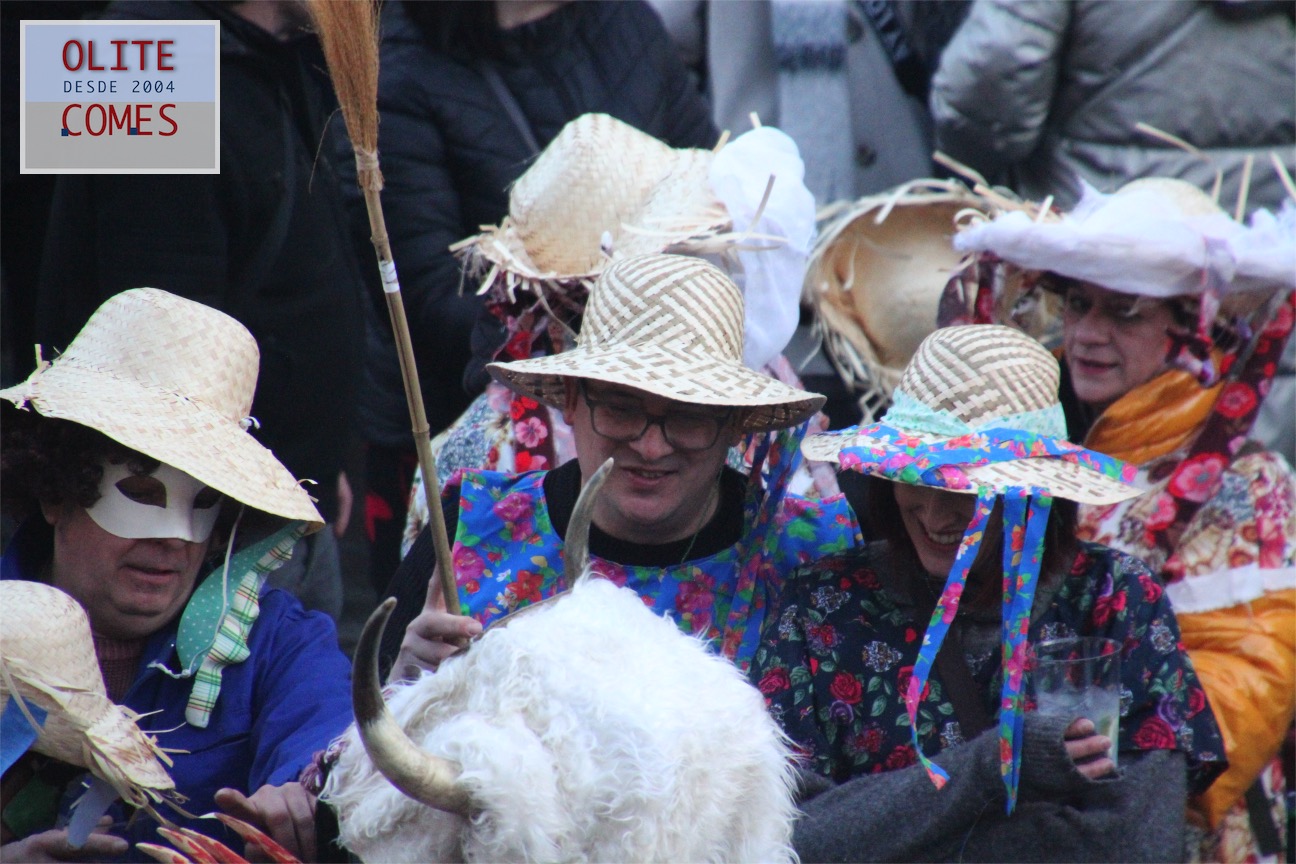 El pregón que dio inicio a los festejo en la plaza de Carlos III el Noble. Las tres vecinas de Olite salieron al balcón en representación del grupo de dantzas Txibiri, organizador del evento y responsable de recuperar la tradición en la localidad, pues fueron ellos quienes en 1992 decidieron volver a festejar los actos del Carnaval Rural. La fiesta está datada en 1600 y se retomó gracias a la tesis de la olitense Cristina Bayona sobre el carnaval.