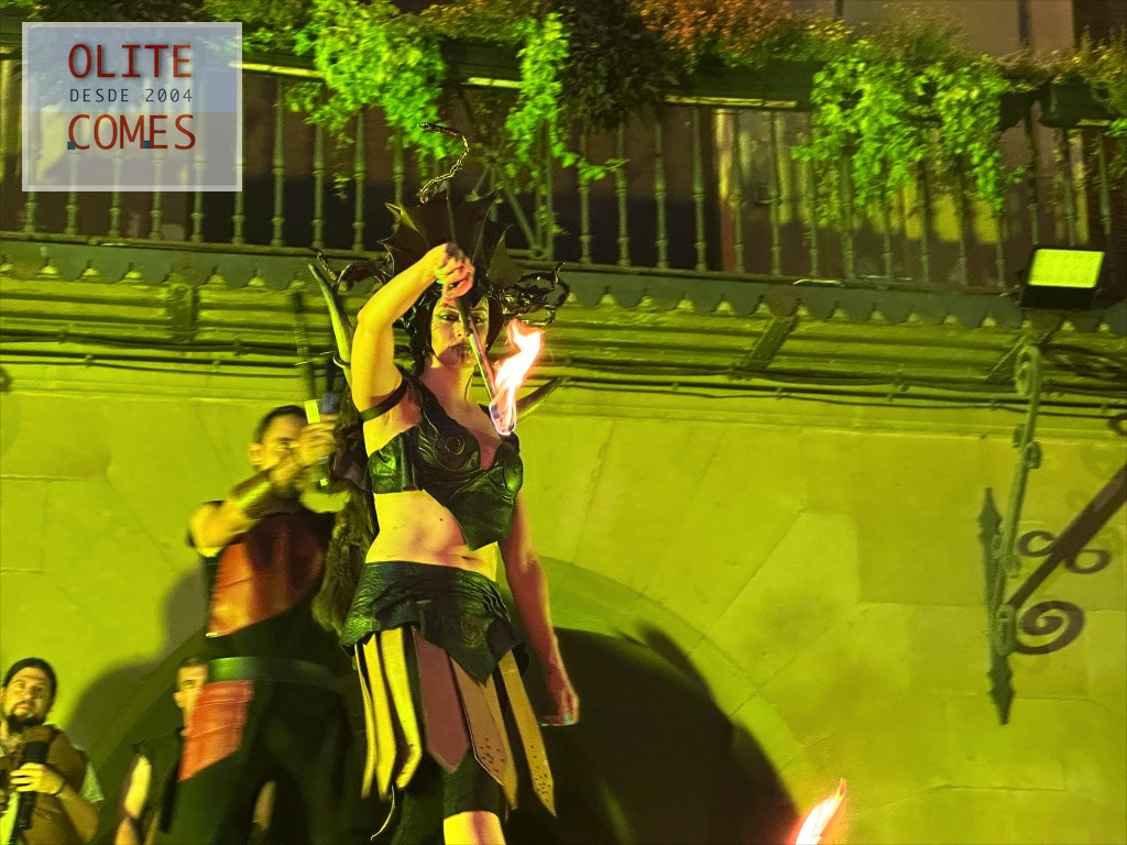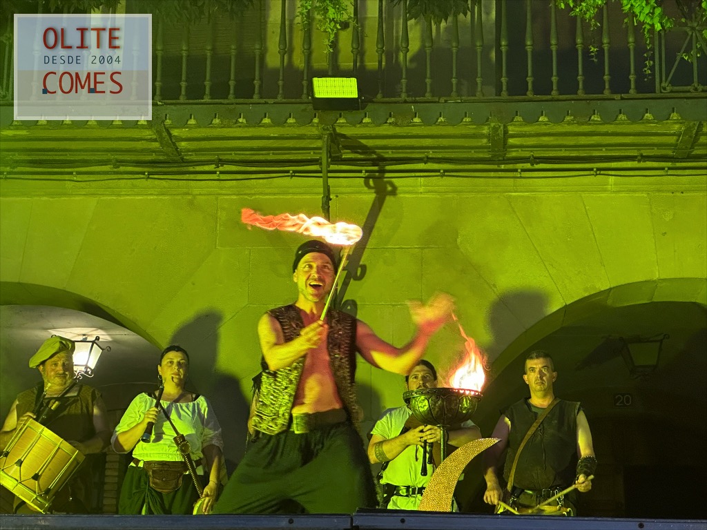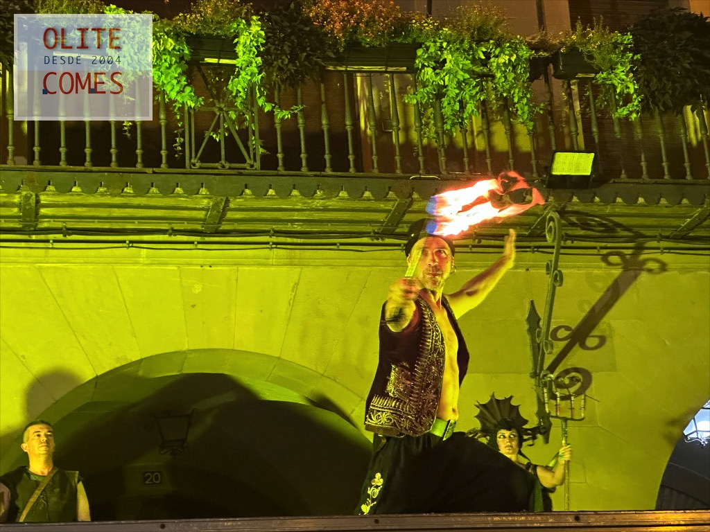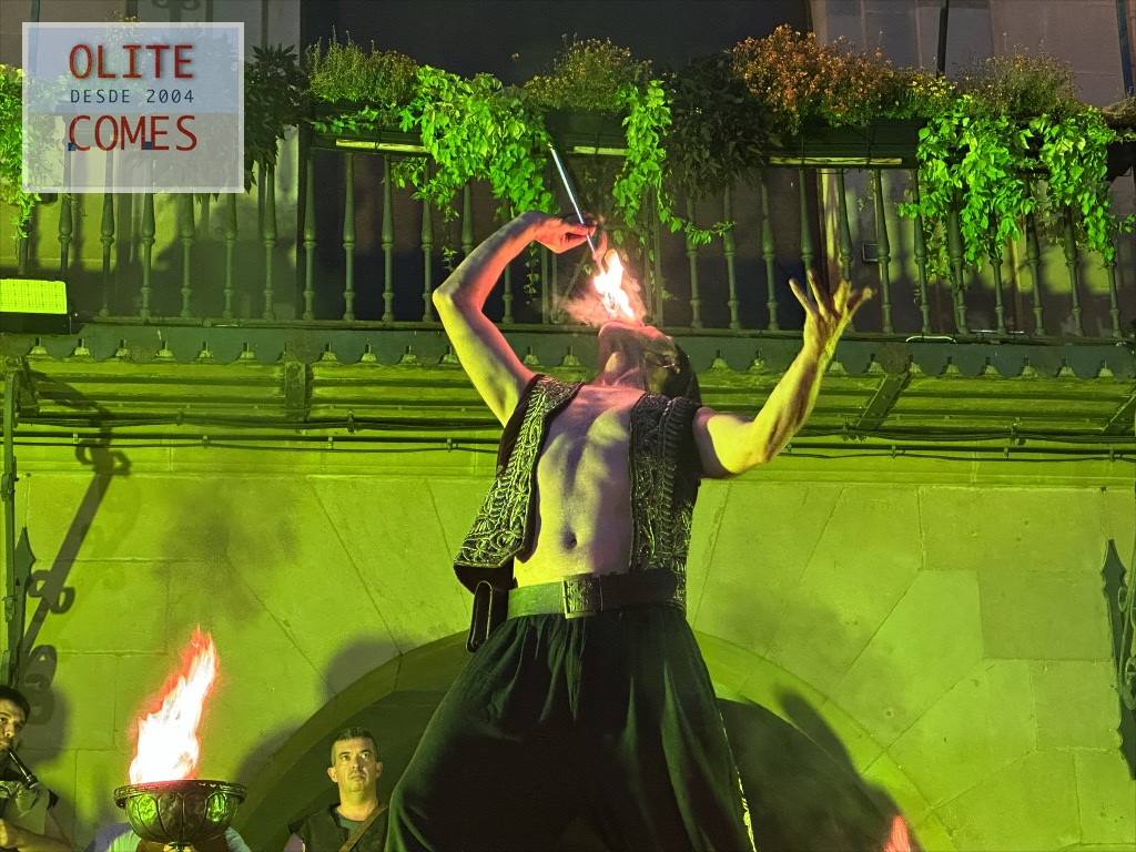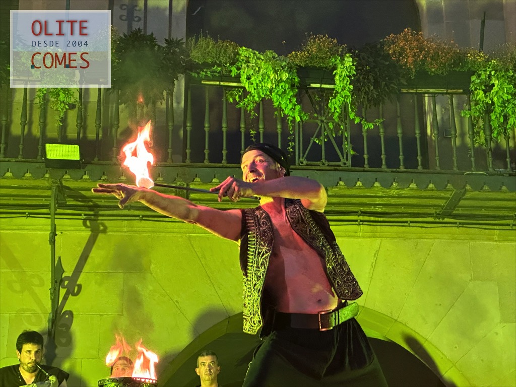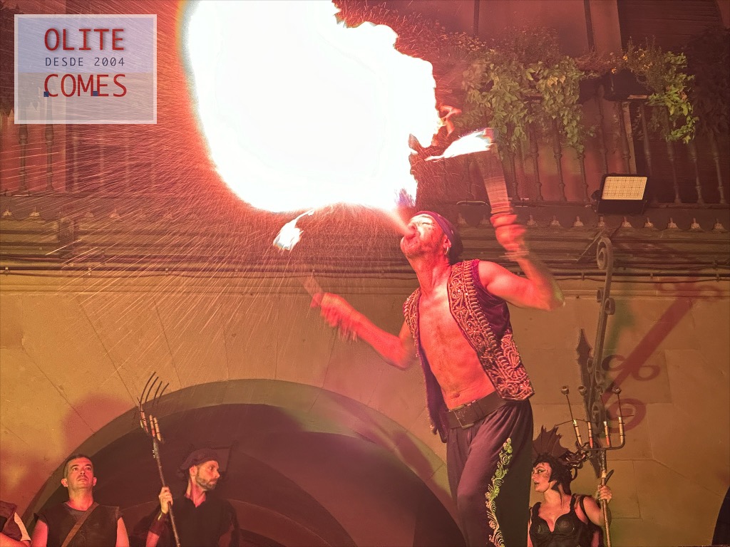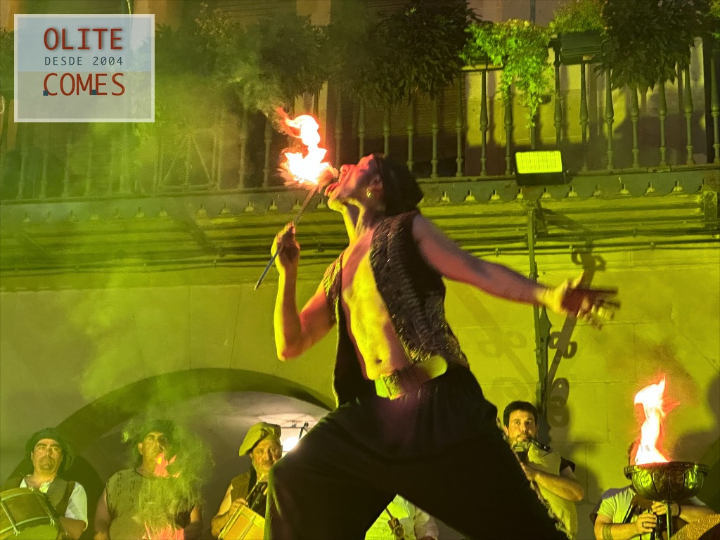 Y como colofón un gran espectáculo de fuego, por la compañía Civi-Civiac y con el gran Ismael a la cabeza, que después de estar durante toda la jornada animando las calles, se atrevió con este espectáculo a más de 30 grados de temperatura. En el espectáculo, se vio todo tipo de malabares con fuego, desde acrobacias con el fuego, tragafuegos y escupefuegos todo ello muy bien sincronizado.